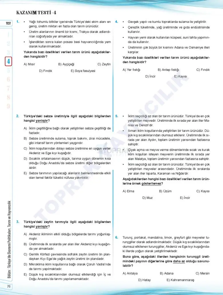 AYT Coğrafya Soru Bankası Toprak Yayıncılık