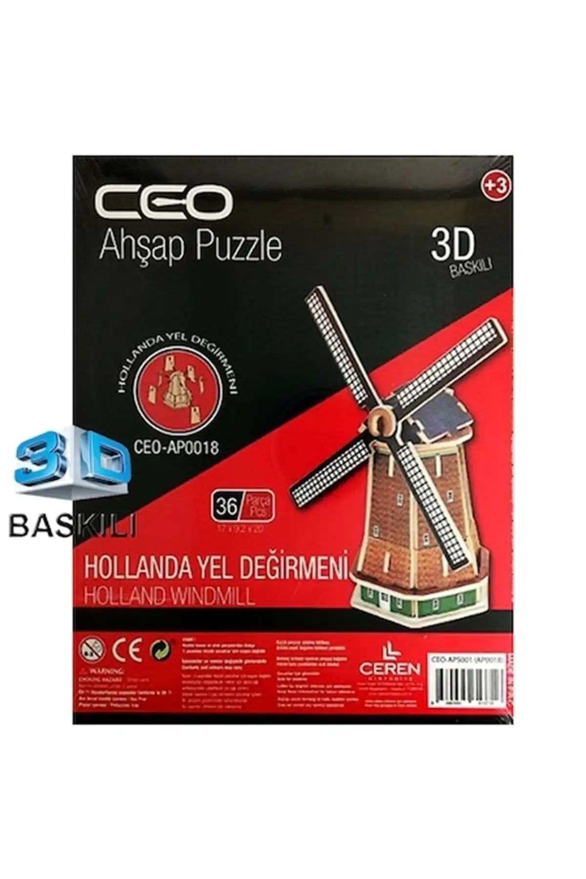 Ceo 3D Ahşap Puzzle Baskili Değirmen