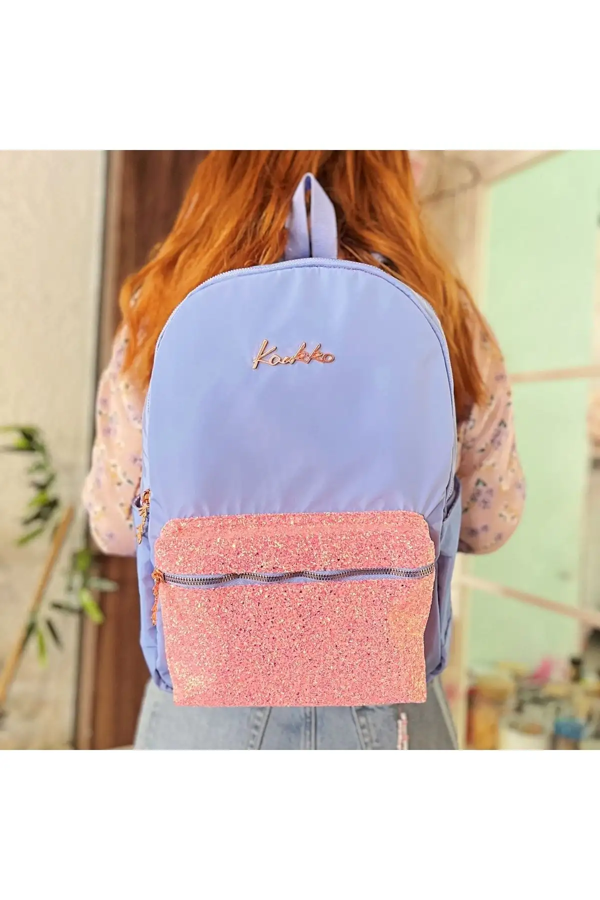 KAUKKO SIRT ÇANTASI BRIGHT TAŞLI-FLORAL MAVİ