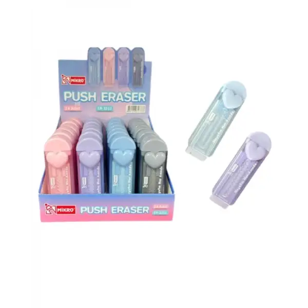 MİKRO ER3212 PUSH PASTEL RENKLİ KALPLİ SÜRGÜLÜ SİLGİ - TEKLİ