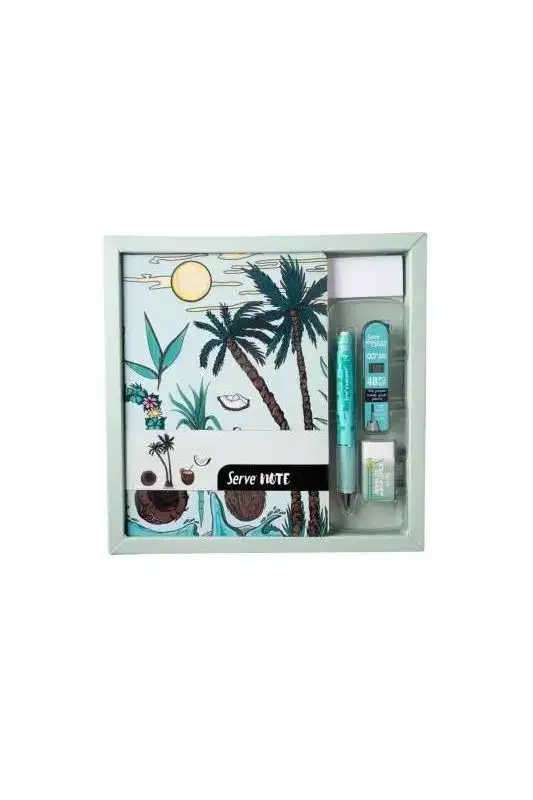 Serve Defter Seti Desenli Nane Yeşili Kutulu