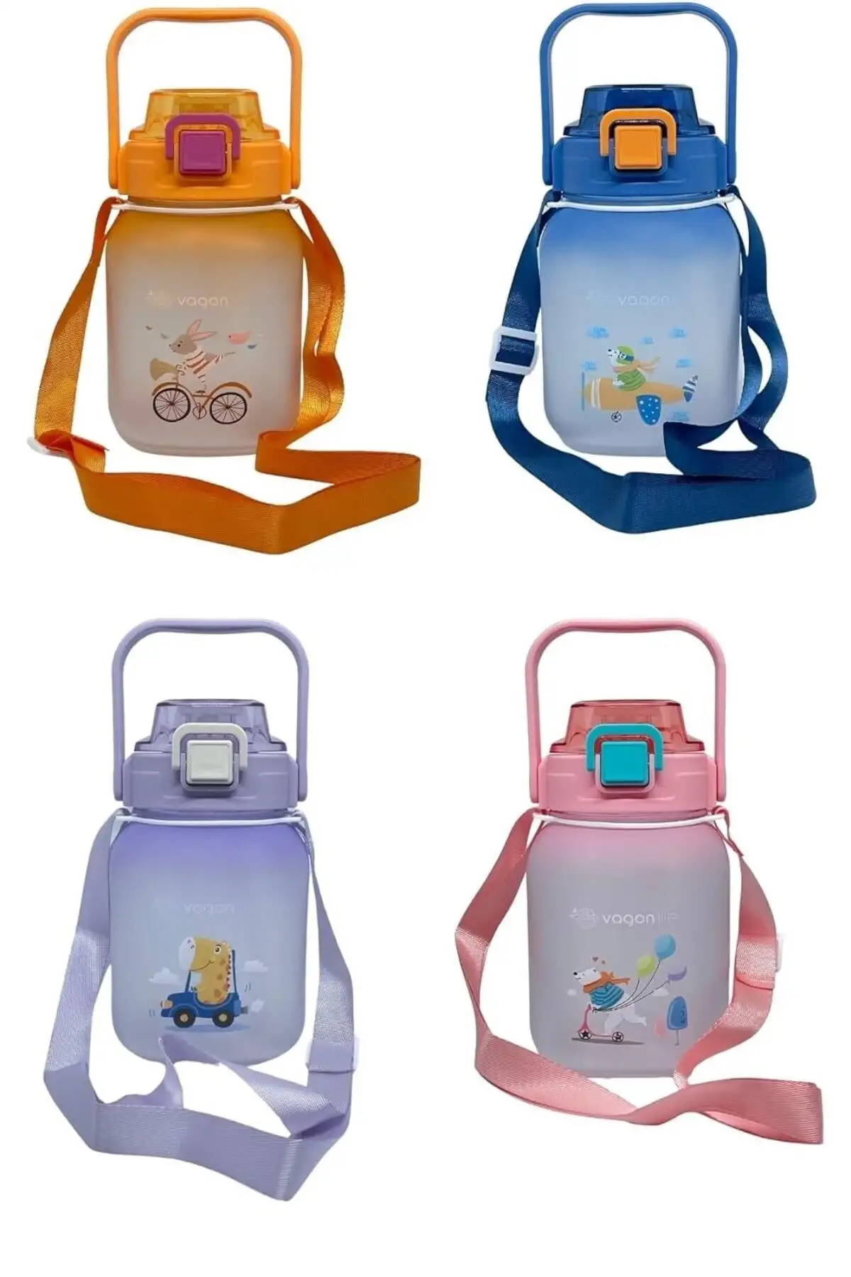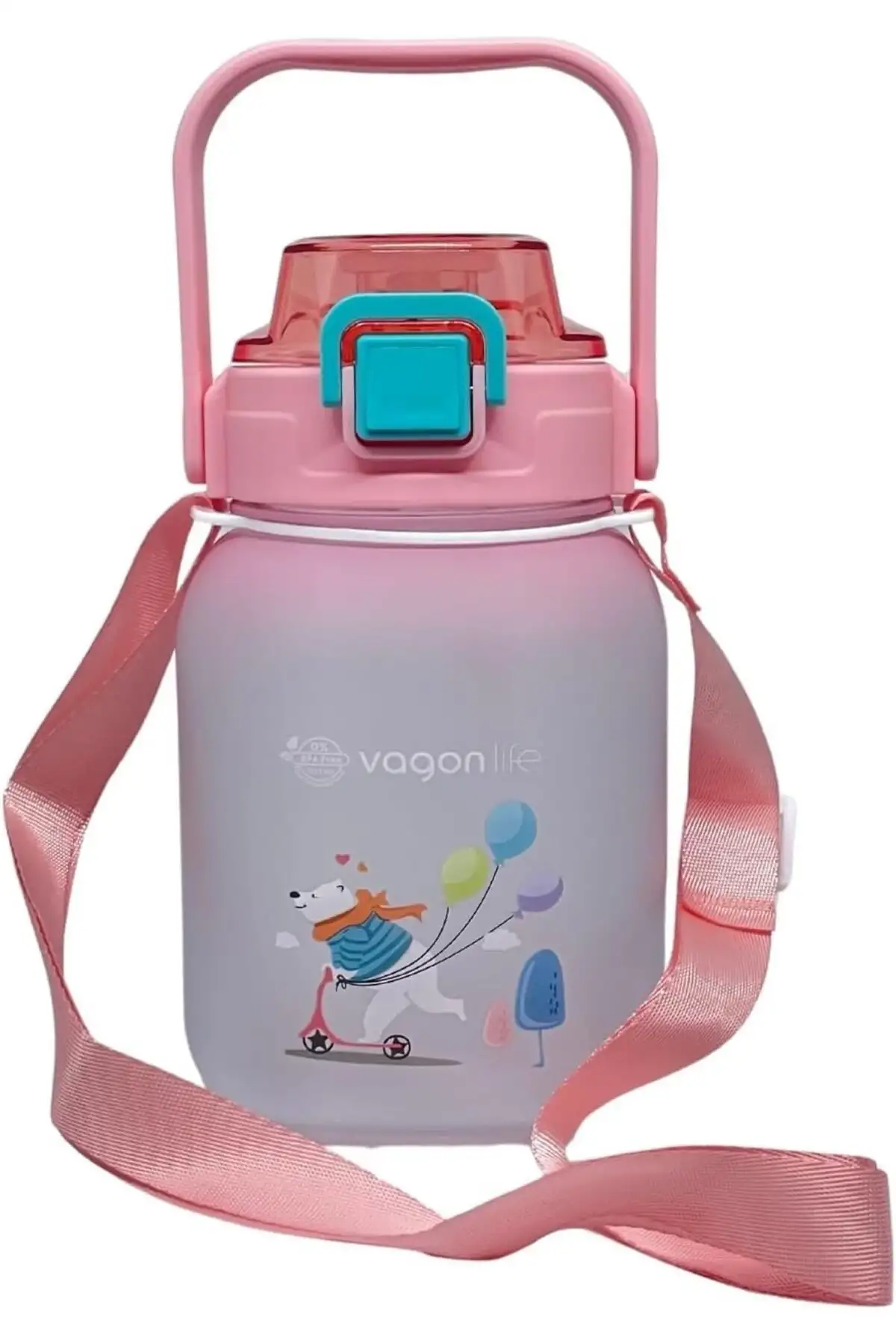 Vagonlife VGN2275-T Pembe 1100ML Çocuk Pipetli/Pipetsiz Kullanım Su Matarası -Askılı