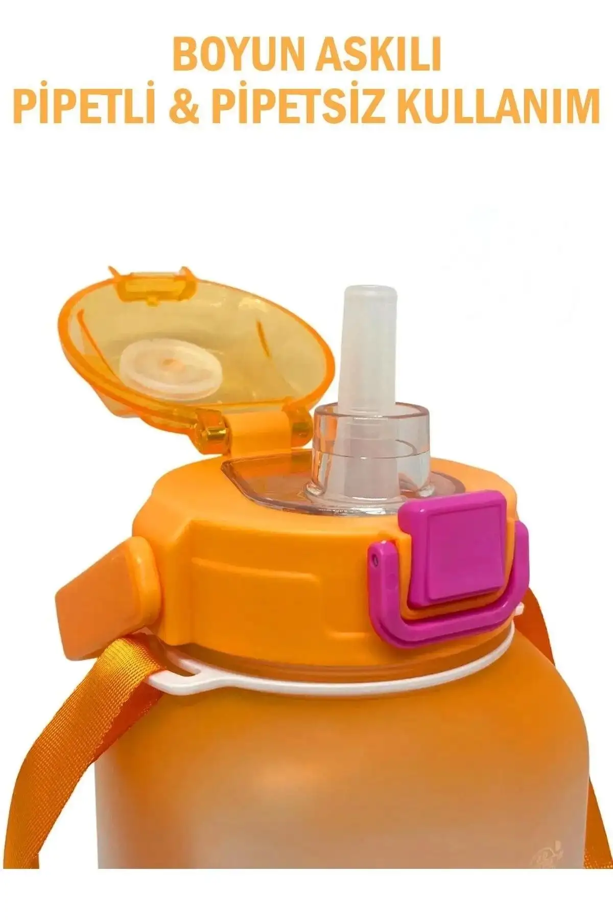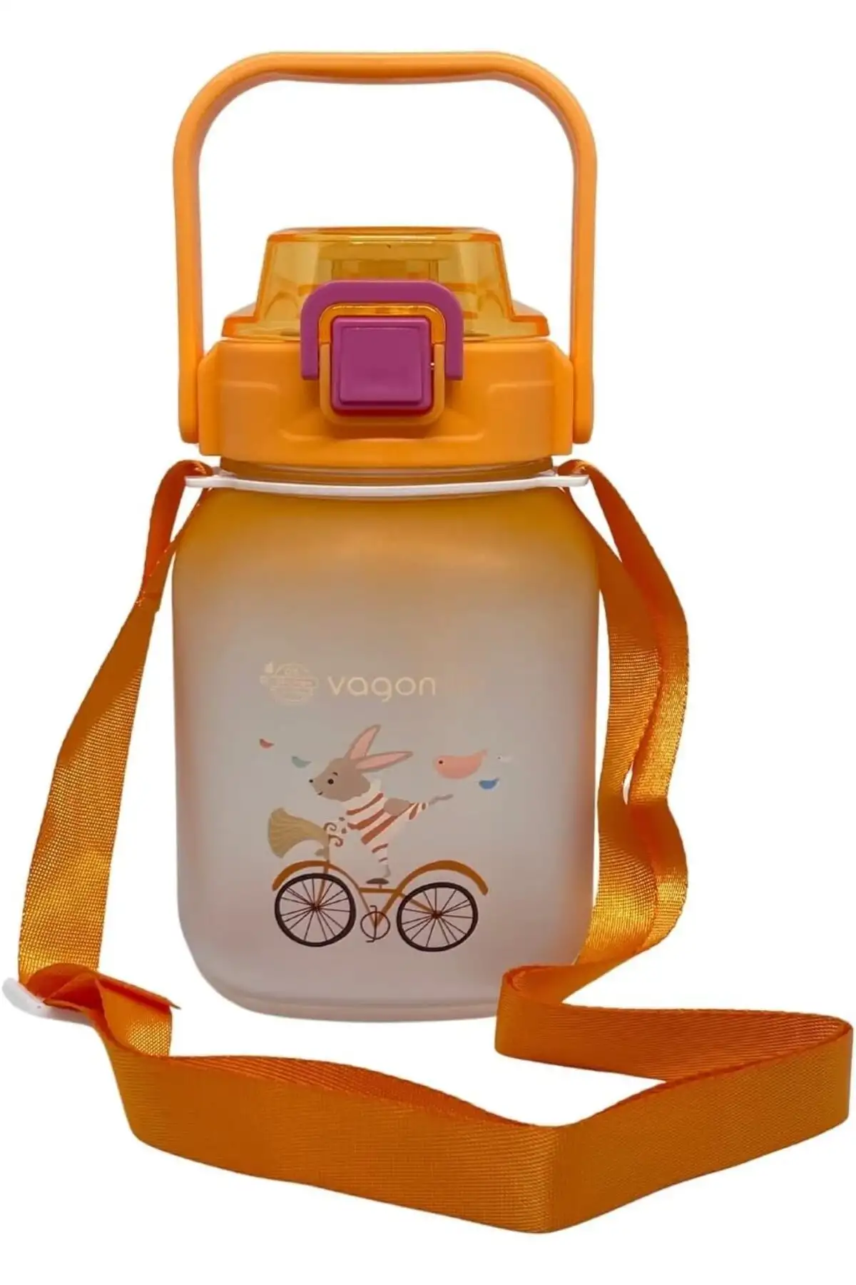 Vagonlife VGN2275-T Turuncu 1100ML Çocuk Pipetli/Pipetsiz Kullanım Su Matarası -Askılı